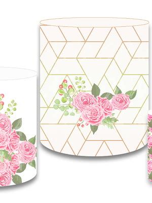 Trio Capa Cilindro Decoração Festa 3d Em Tecido Veste Fácil.Painel Redondo + 3 Cilindros Realeza 3d Em Tecido - 1,5x1,5m.