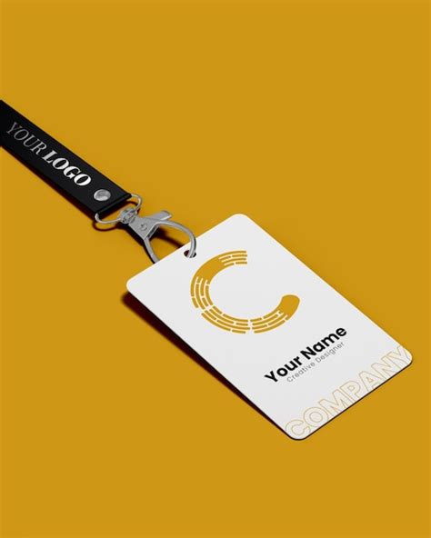 Cartão de identificação de crachá de plástico transparente com cordão de pescoço branco.Mulher de negócios na África seu crachá de identificação . | Vetor Premium .