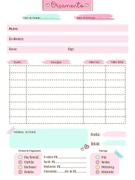 Ficha De Pedidos Para Imprimir